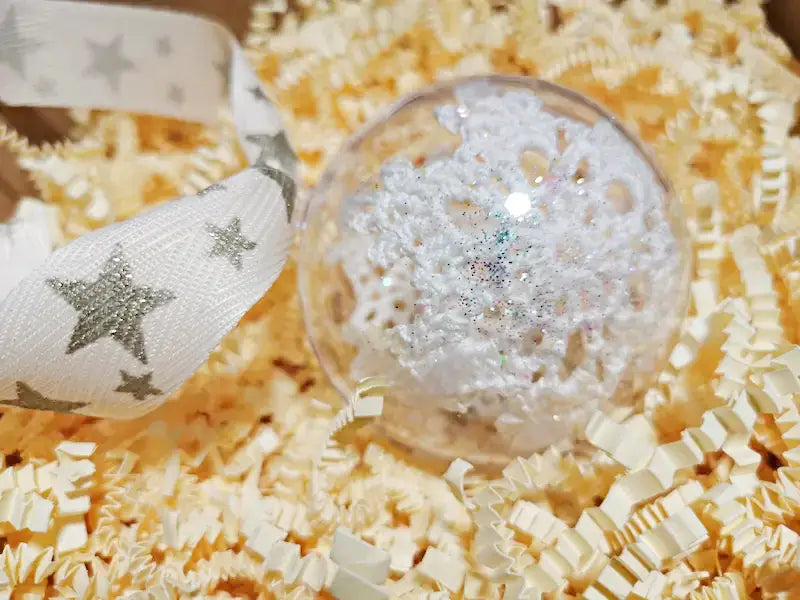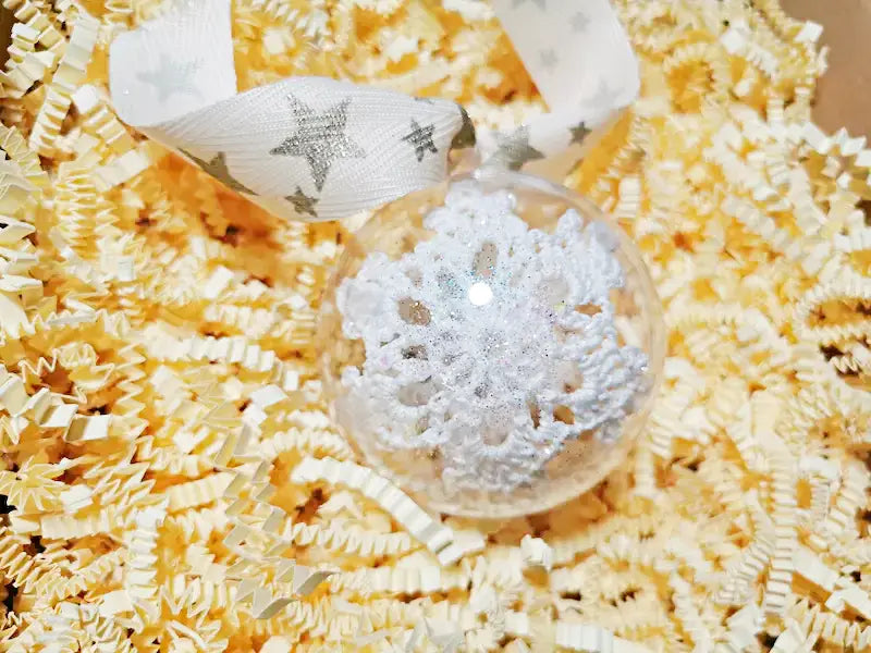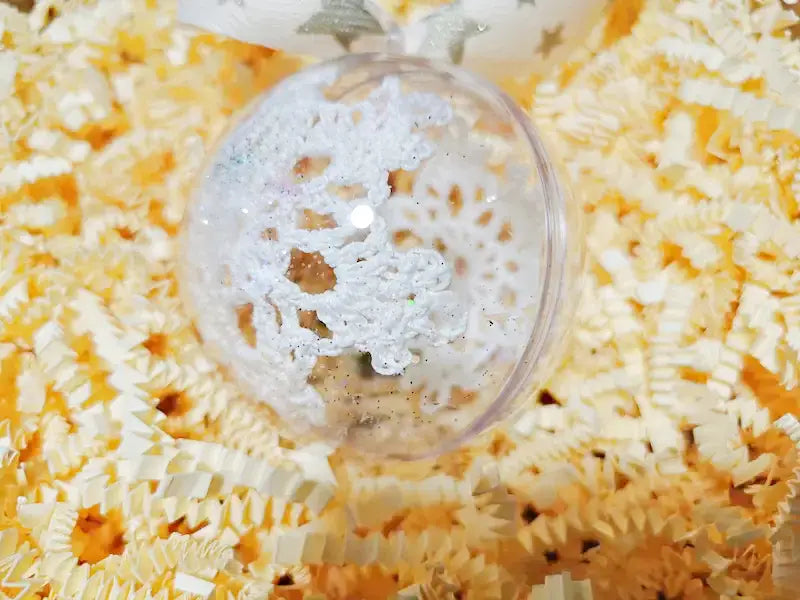 Kvačkan snežinke v akrilni krogli z bleščicami.