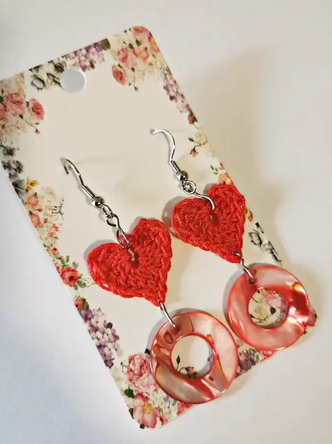 Uhani RDEČI SRČEK - kvačkani