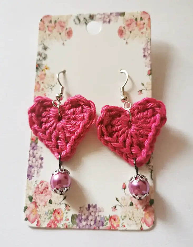 Ročno kvačkani srček z obeskom. Unikaten kos nakita.